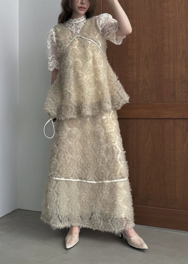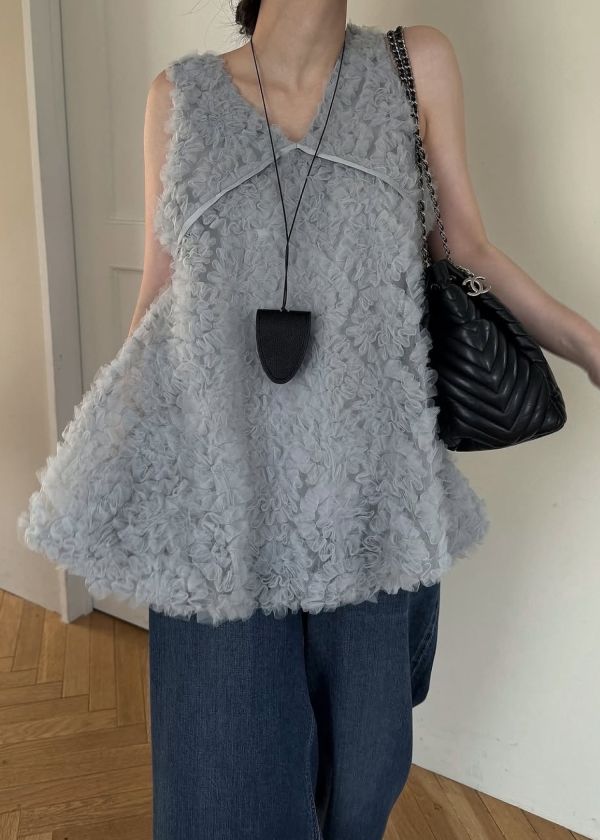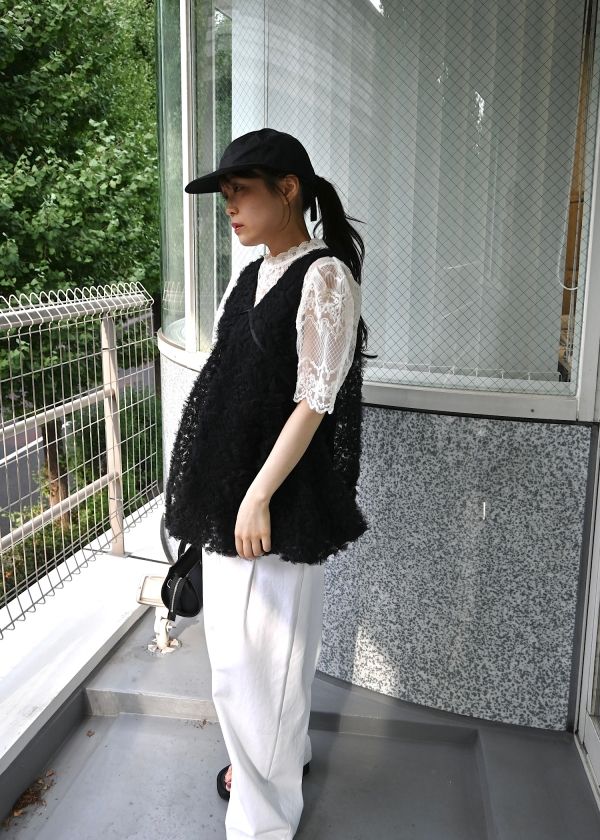 ・立体感のあるチュール素材が目を惹くトップス