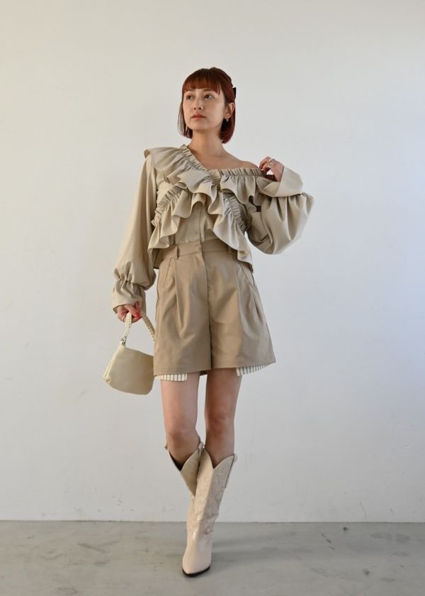 ・アシンメトリーにフリルが施されたブラウス
