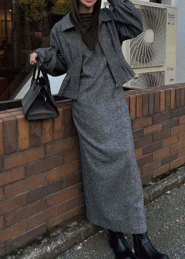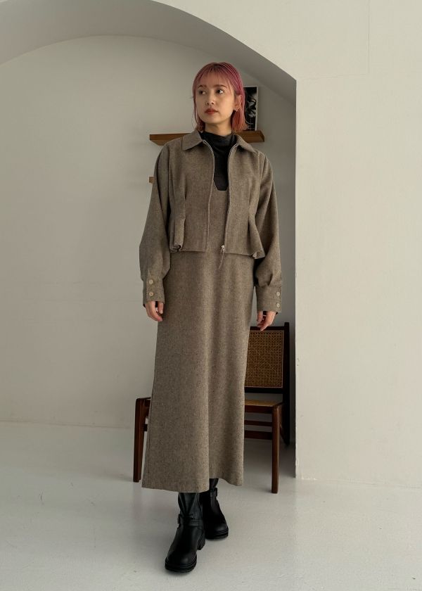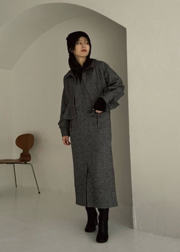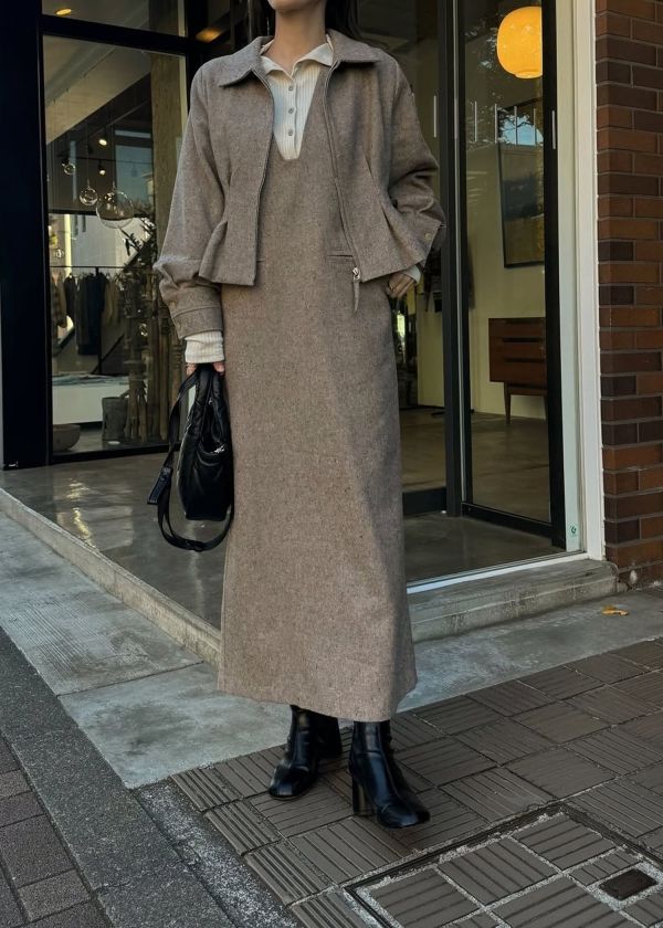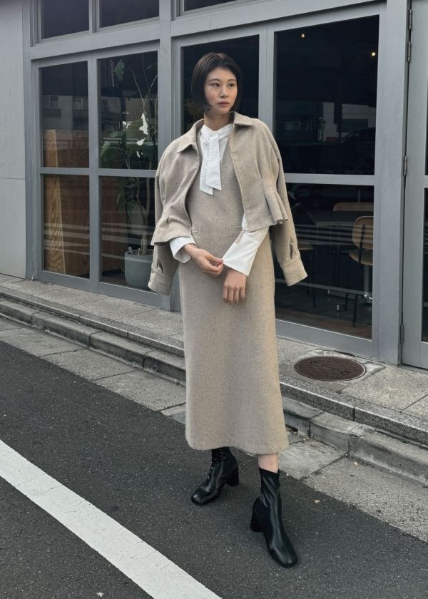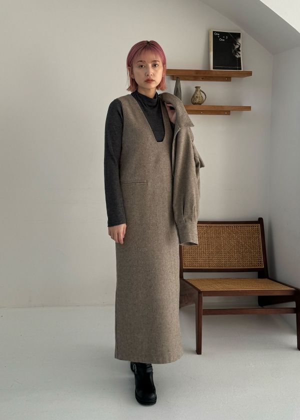 ・mix tweed no sleeve deep square neck OPと
