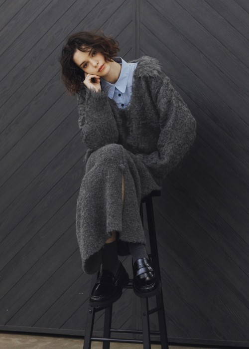 ・メランジプードルヤーンに起毛をかけた、ニットカーディガン