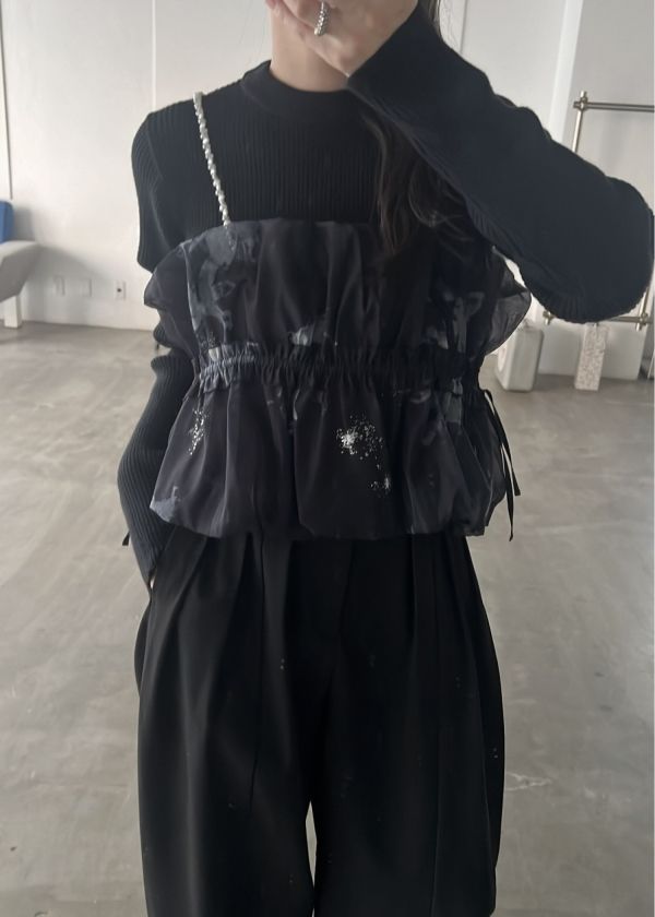 繊細な素材の為、強度な力が加わると縫い目が開いたり滑脱の原因になる可能性がございますのでご注意ください。