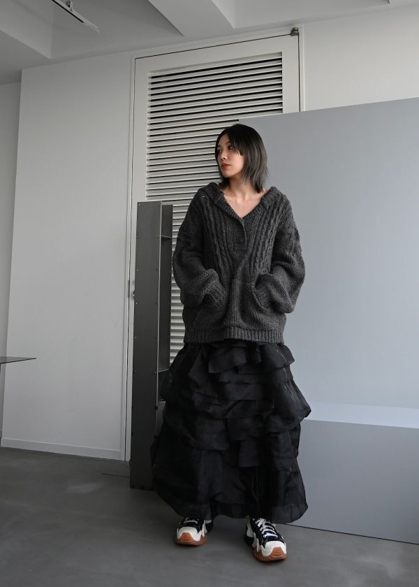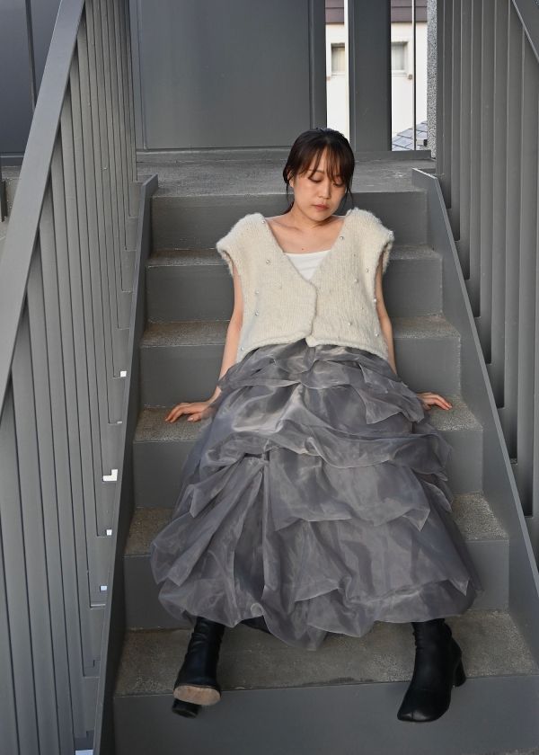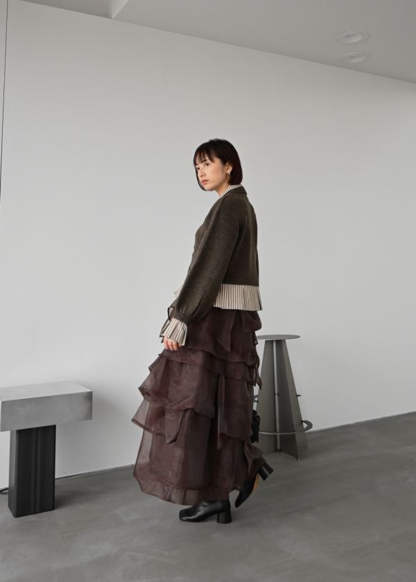 ・オーガンジー素材をランダムに重ねたスカート
