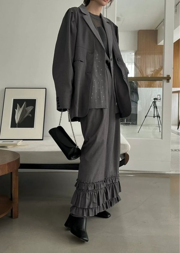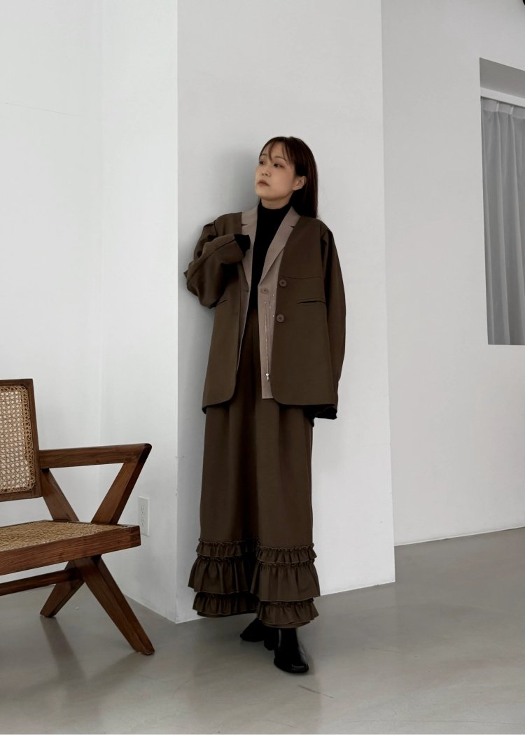 ※volume tuck sleeve no collar JKとhem frill tuck pencil SKは同じ素材になります。