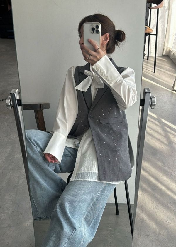 ・ホットフィックスが散りばめられた襟付きジレ