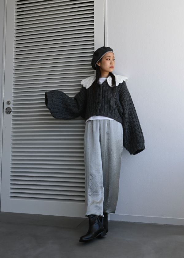 ・裾絞りのシルエットがややカジュアルな印象ながら