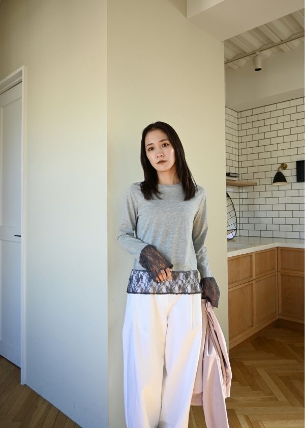 ・袖口と裾にレースを施したシアートップス