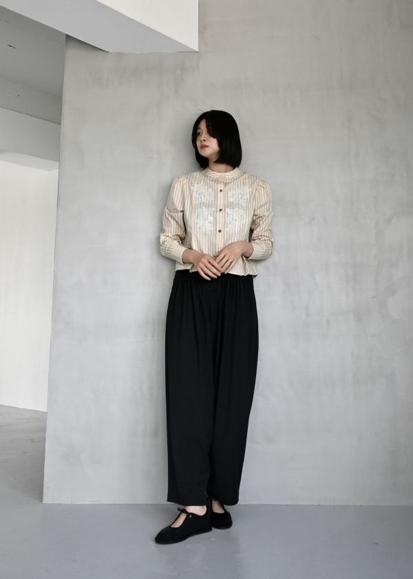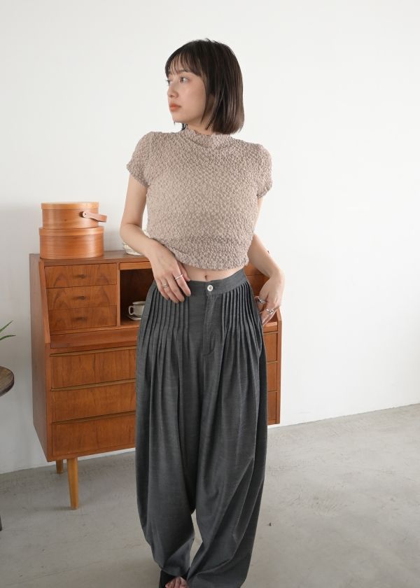 ・ウエスト部分にピンタックをふんだんに施したパンツ