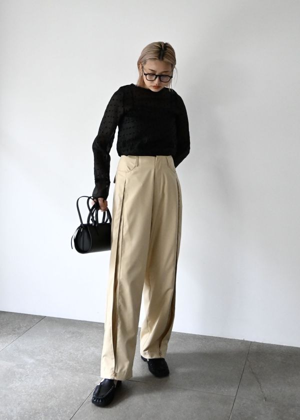 繊細な素材の為、強度な力が加わると縫い目が開いたり滑脱の原因になる可能性がございますのでご注意ください。