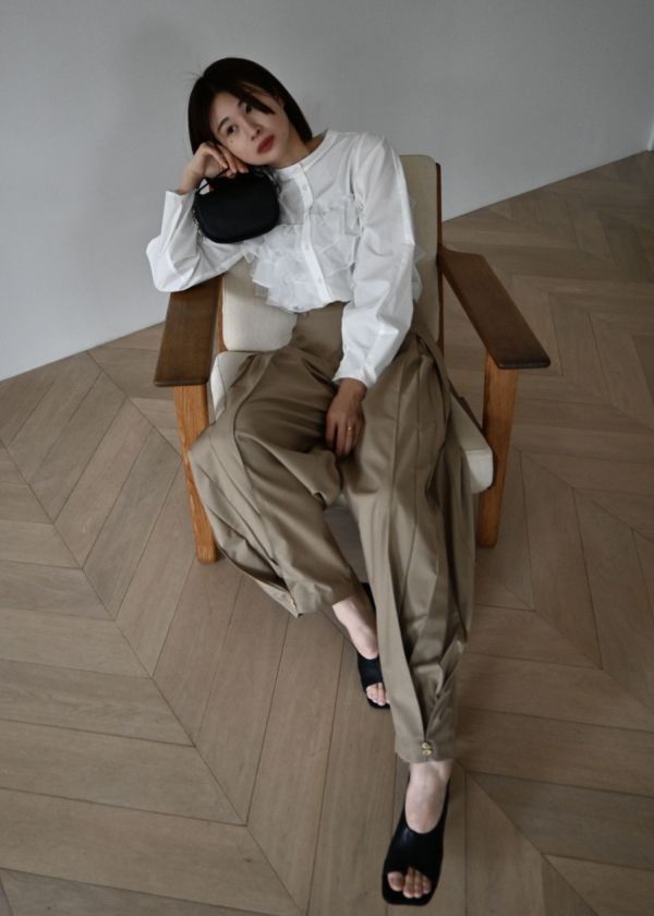 ・裾と後フラップには楕円形のボタンをポイントに