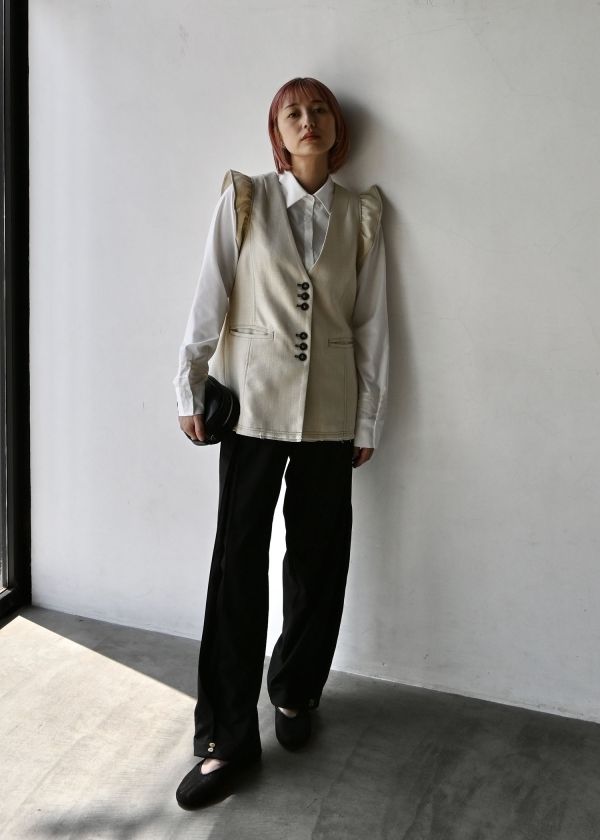 ・裾には変形のマーブルボタンが取り付けられており
