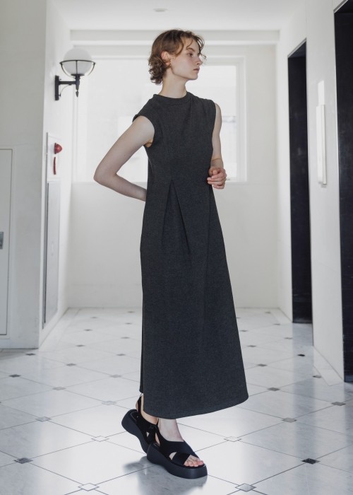 ・one side tuck flare nosleeve rib OPと