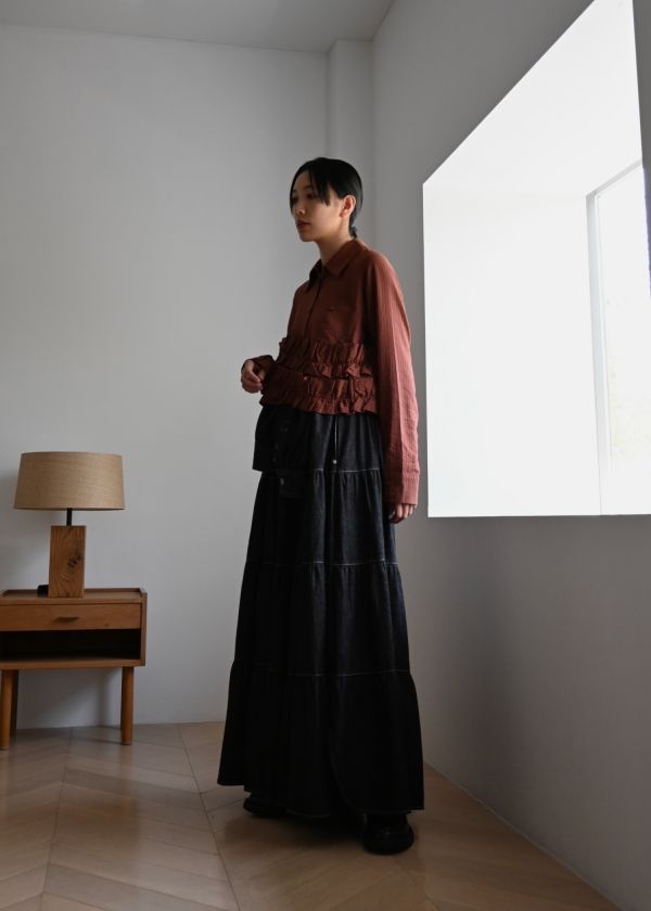 【Healthy DENIM × WILLFULLY】"Aphrodite" tiered denim shirt OP