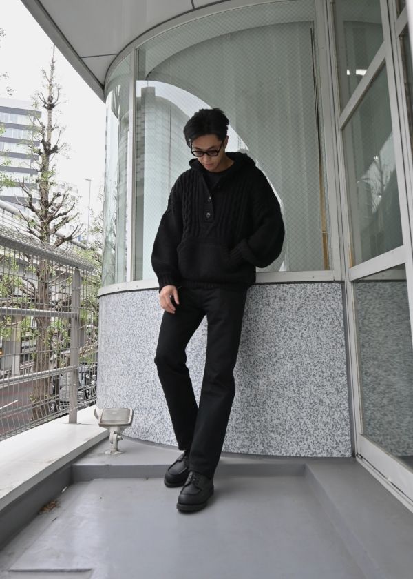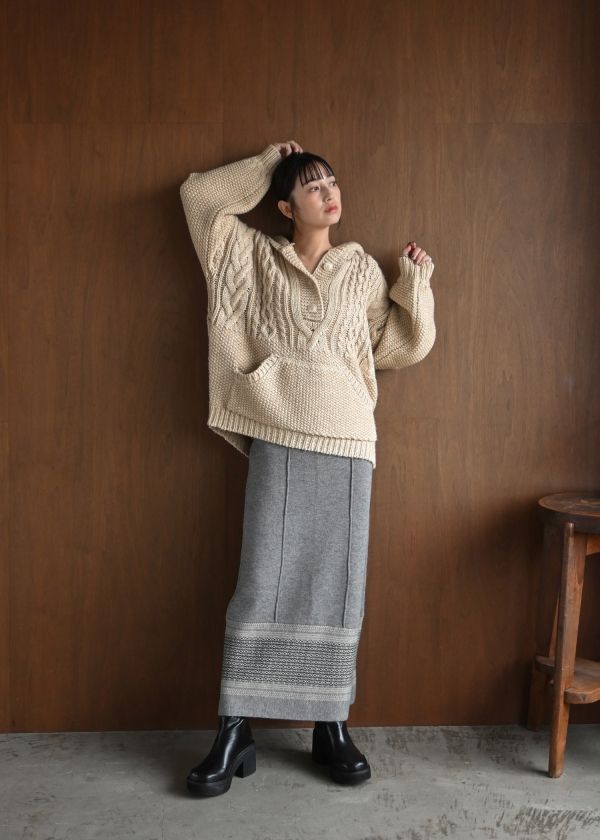 ・ロービング糸でざっくりしたケーブル模様と鹿の子編を配置