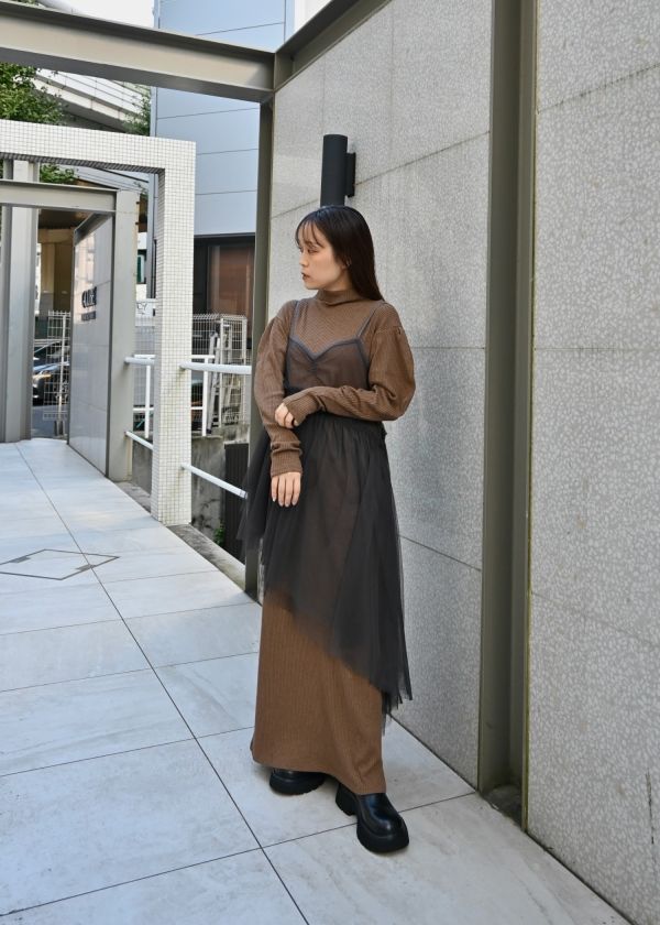 ・volume sleeve high neck rib OPと