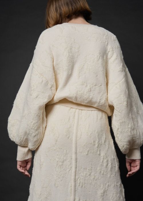 ・ブークレ糸を使用した花柄ジャカードマーメイドニットスカート