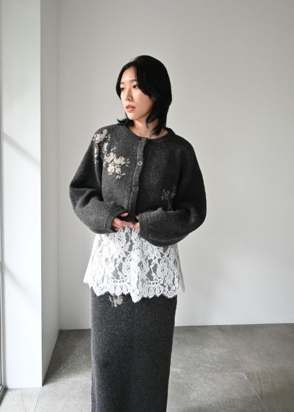 ・cropped flower jacquard knit cardiganと