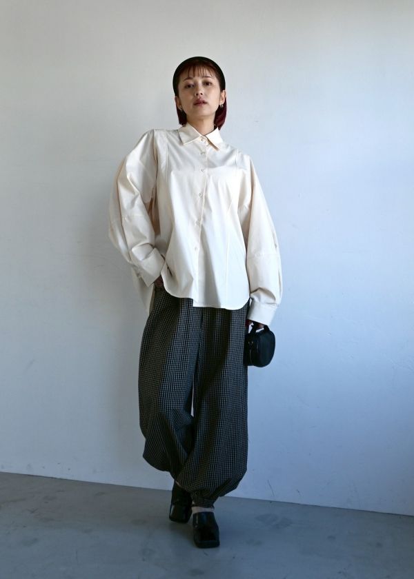 ・バックスタイルにボリュームを持たせたコットンシャツ