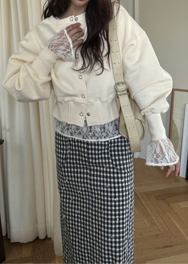 ・ショート丈のスウェットにぽふっとした袖がキャッチー