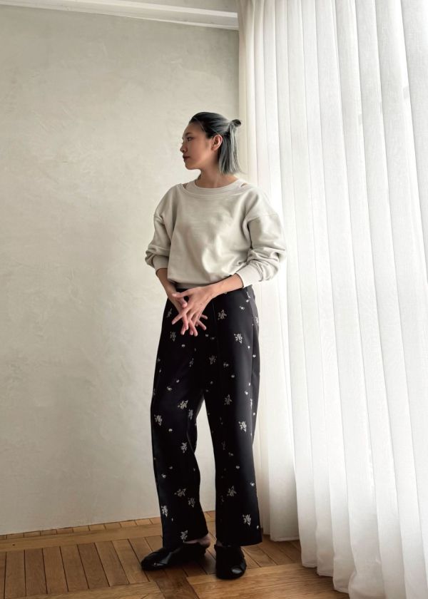 ・小花柄プリントがキャッチーなオリジナル柄のパンツ