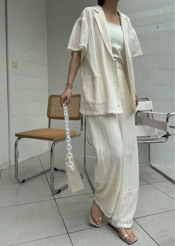 ・シアーストライプレース素材がキャッチーなパンツ
