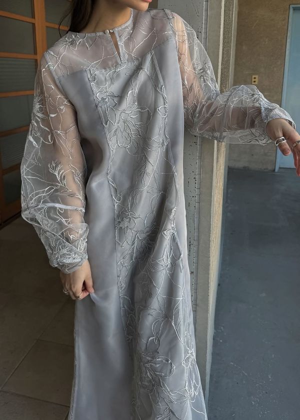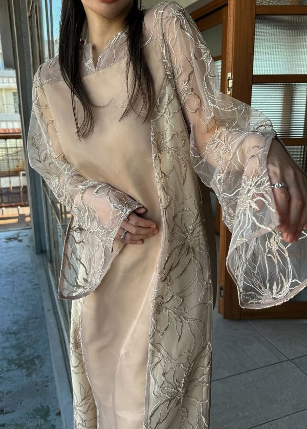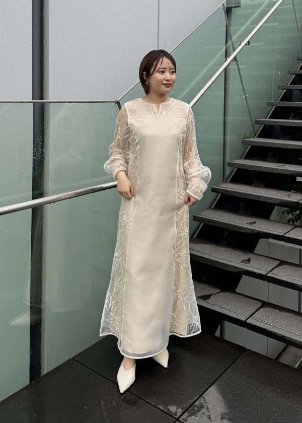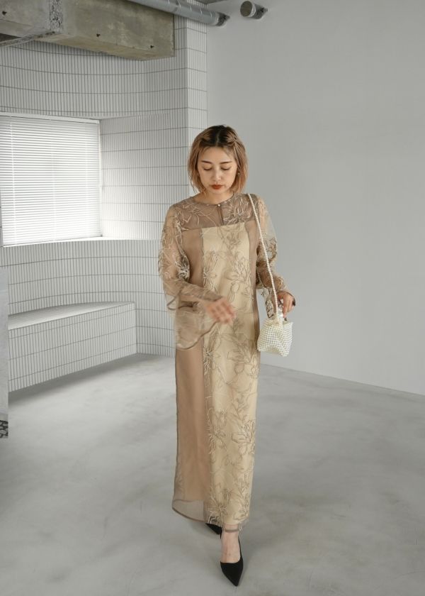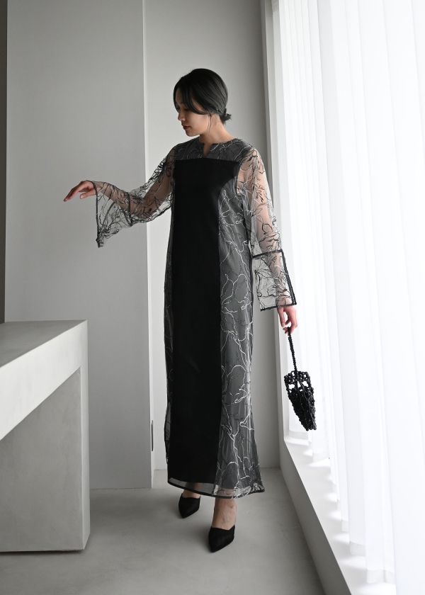 ・刺繍チュール生地がキャッチーなシアーワンピース