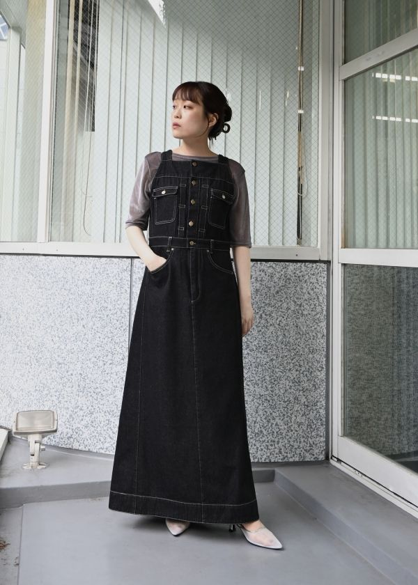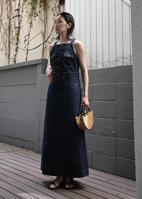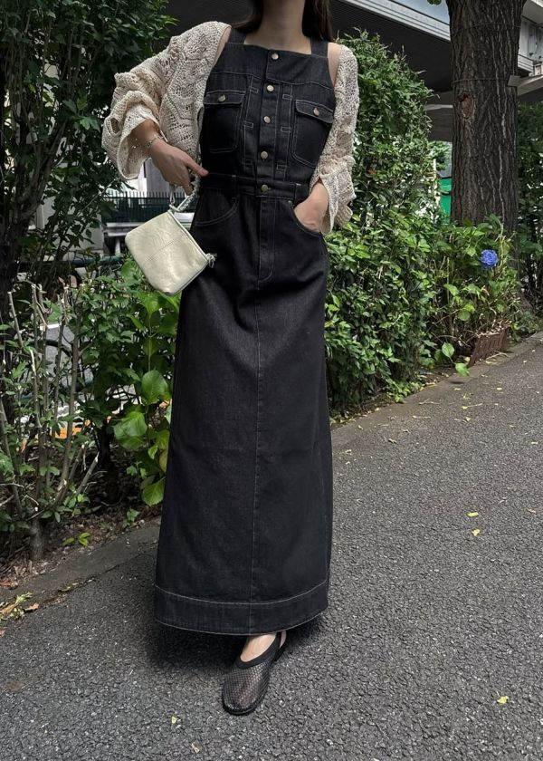 ・スクエアネックのデニムワンピース
