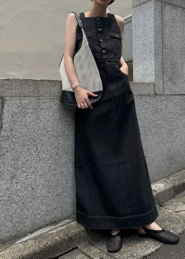 denim square neck no sleeve OP