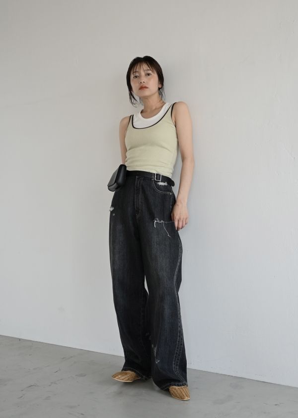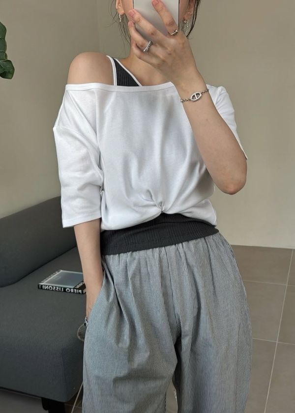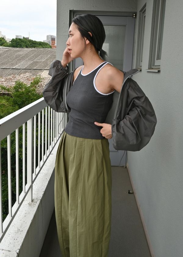 タンクトップのショルダー部分を見せる