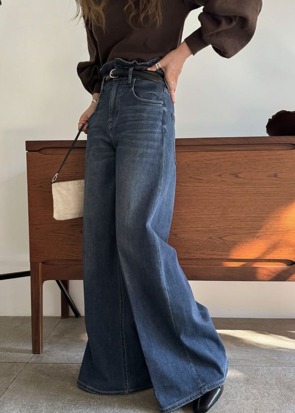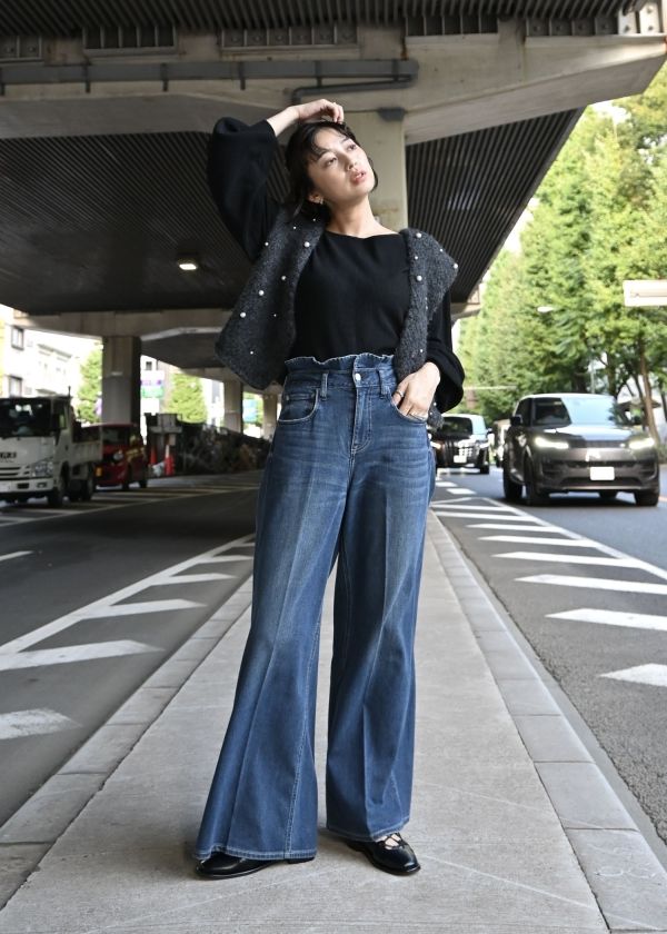 美しいシルエットが特徴のバギーデニムパンツ。