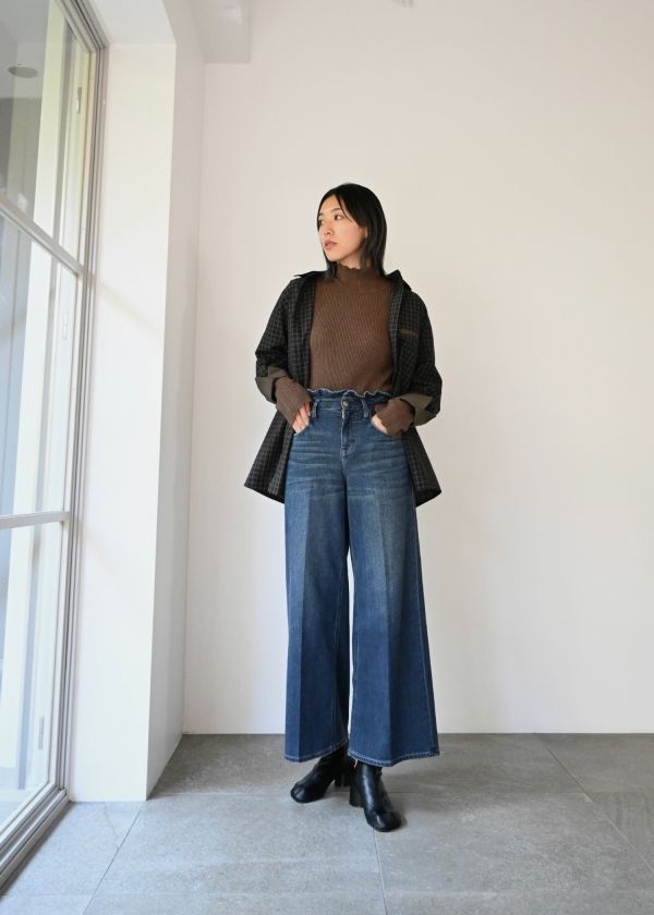 【Healthy DENIM × WILLFULLY】"Harmonia" waist frill wide denim PT