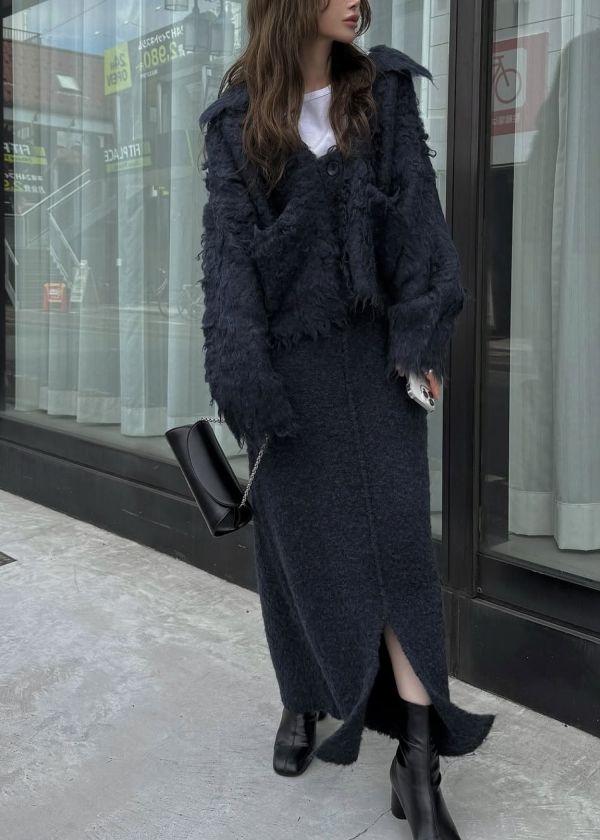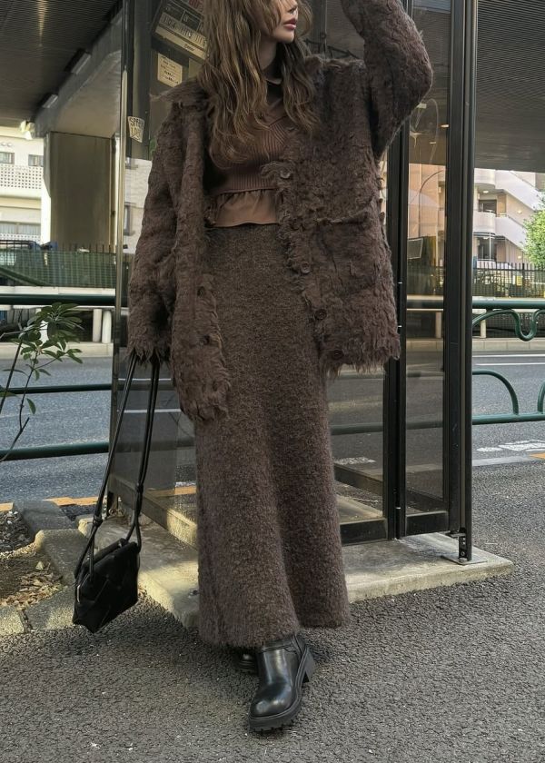 ・メランジプードルヤーンに起毛をかけた、ニットカーディガン