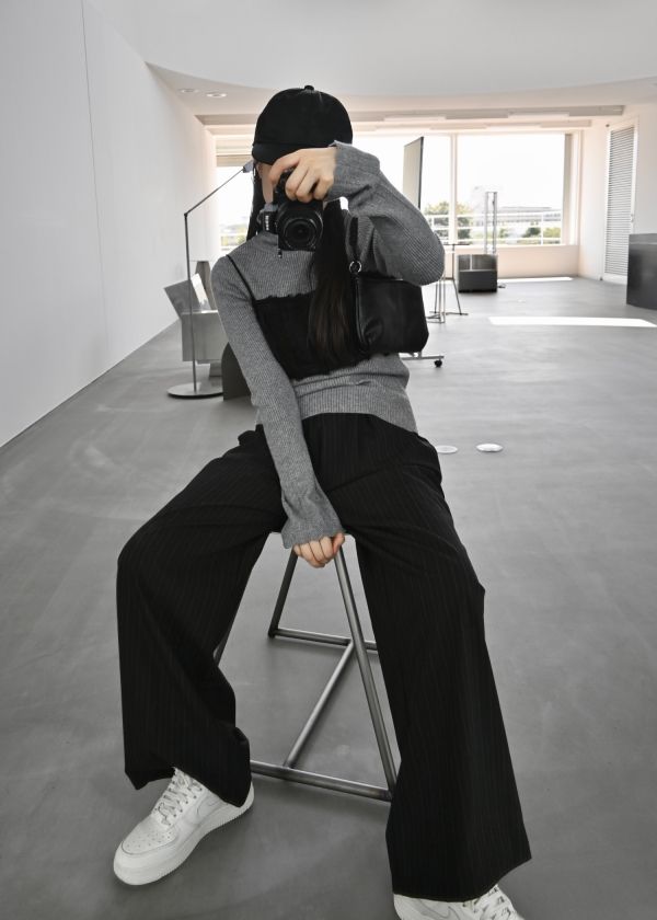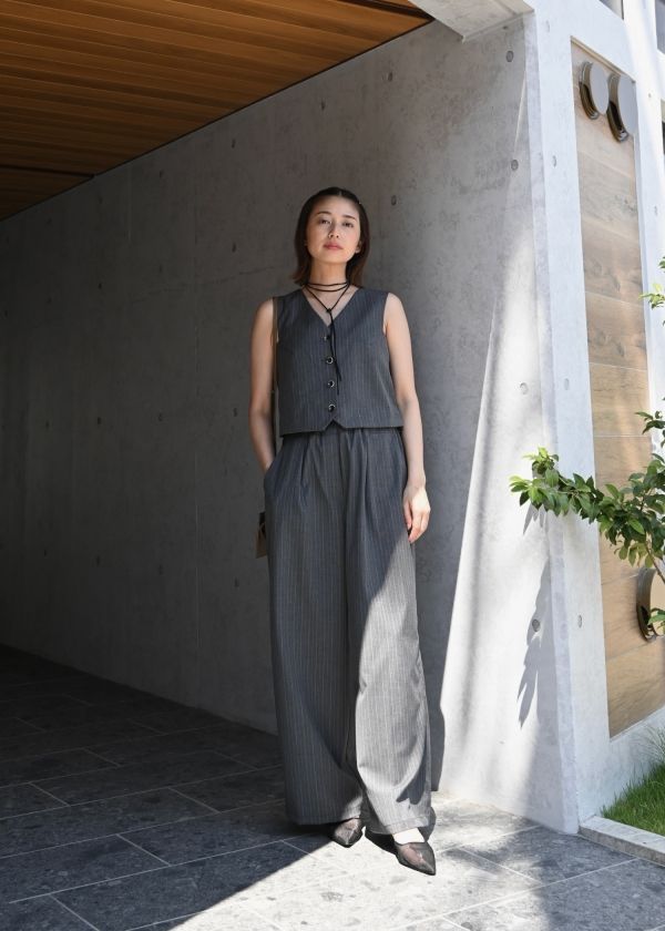 ・縦ラインを強調するストライプ柄ですっきり見えが叶う1着