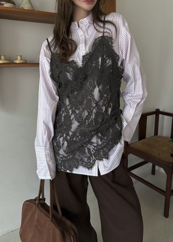 ・繊細なレースが抜け感のあるトレンドライクな着こなしに