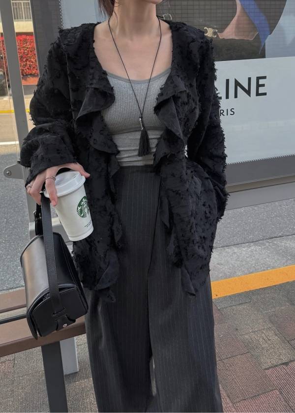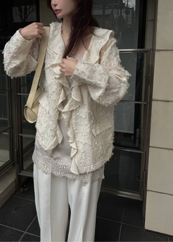 ・フロントラッフルのカットジャカード素材のシャツジャケット