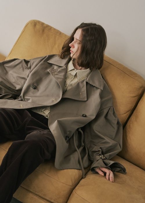 middle shaggy volume sleeve trench coat