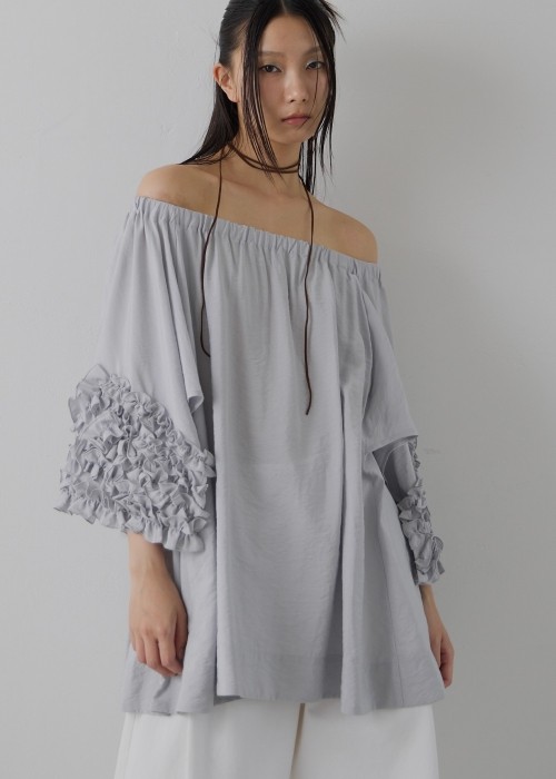 off shoulder frill turnup tops