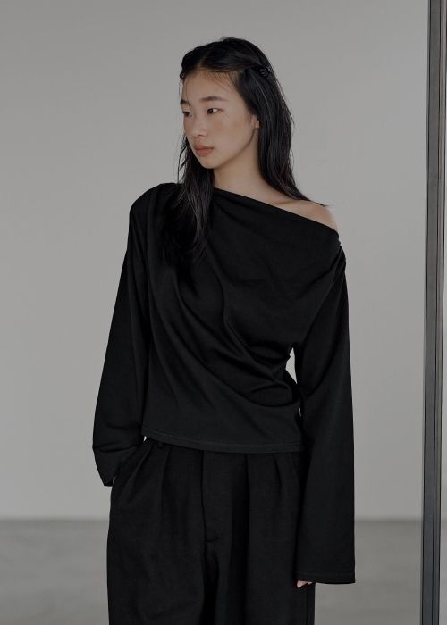 asymmetry drape neck tops