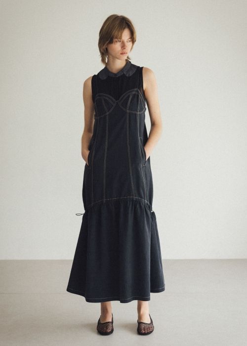 denim panel a line lace hem no sleeve OP