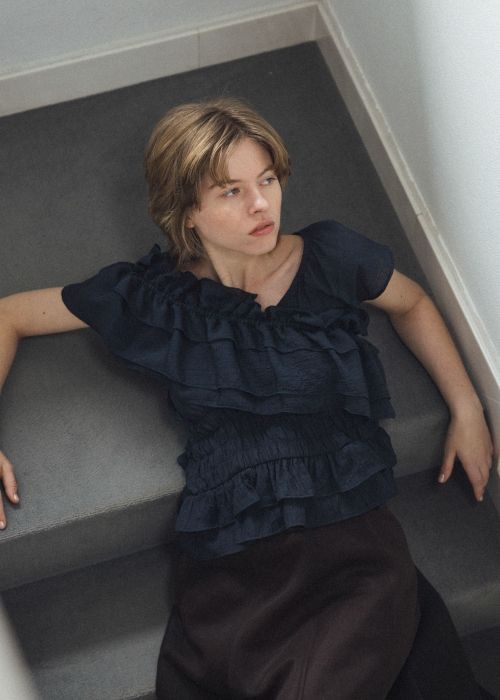 asymmetry tiered frill sheer shirring BL