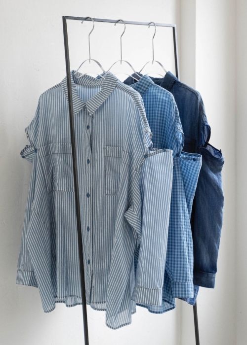 indigo gauze open shoulder oversize SH