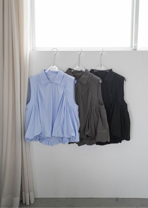 volume balloon gather no sleeve tops